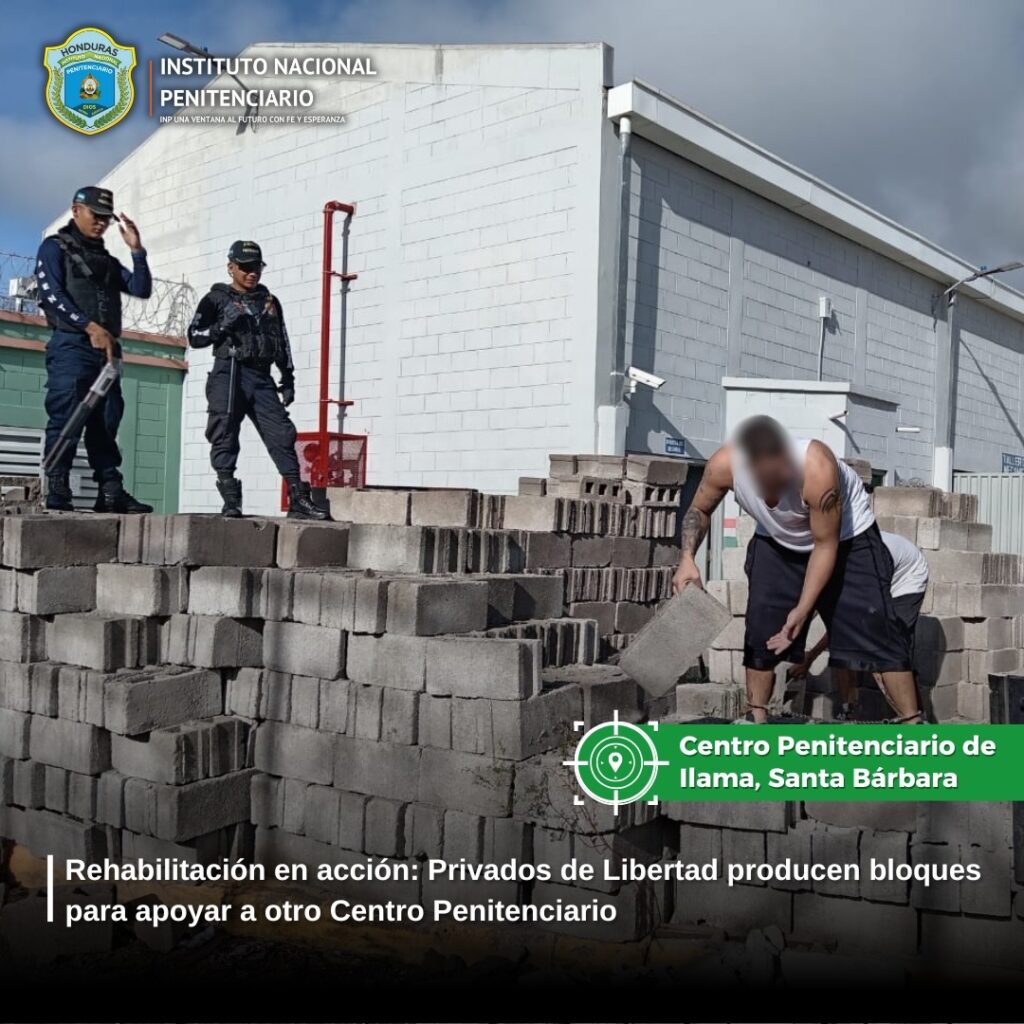 Privados de libertad del Centro Penitenciario de Ilama, Santa Bárbara elaboraron mil bloques los cuales serán donados para contribuir a las mejoras de infraestructura en el Centro Penitenciario de Ocotepeque.