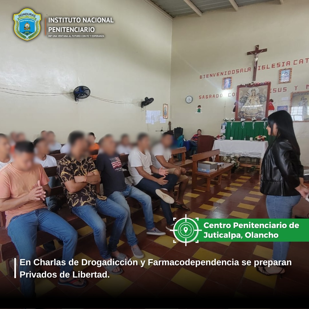 Privados de libertad del Centro Penitenciario de Juticalpa, Olancho de la bartolina 3 de sentenciados recibieron una charla sobre la prevención del alcoholismo, drogadicción y farmacodependencia.