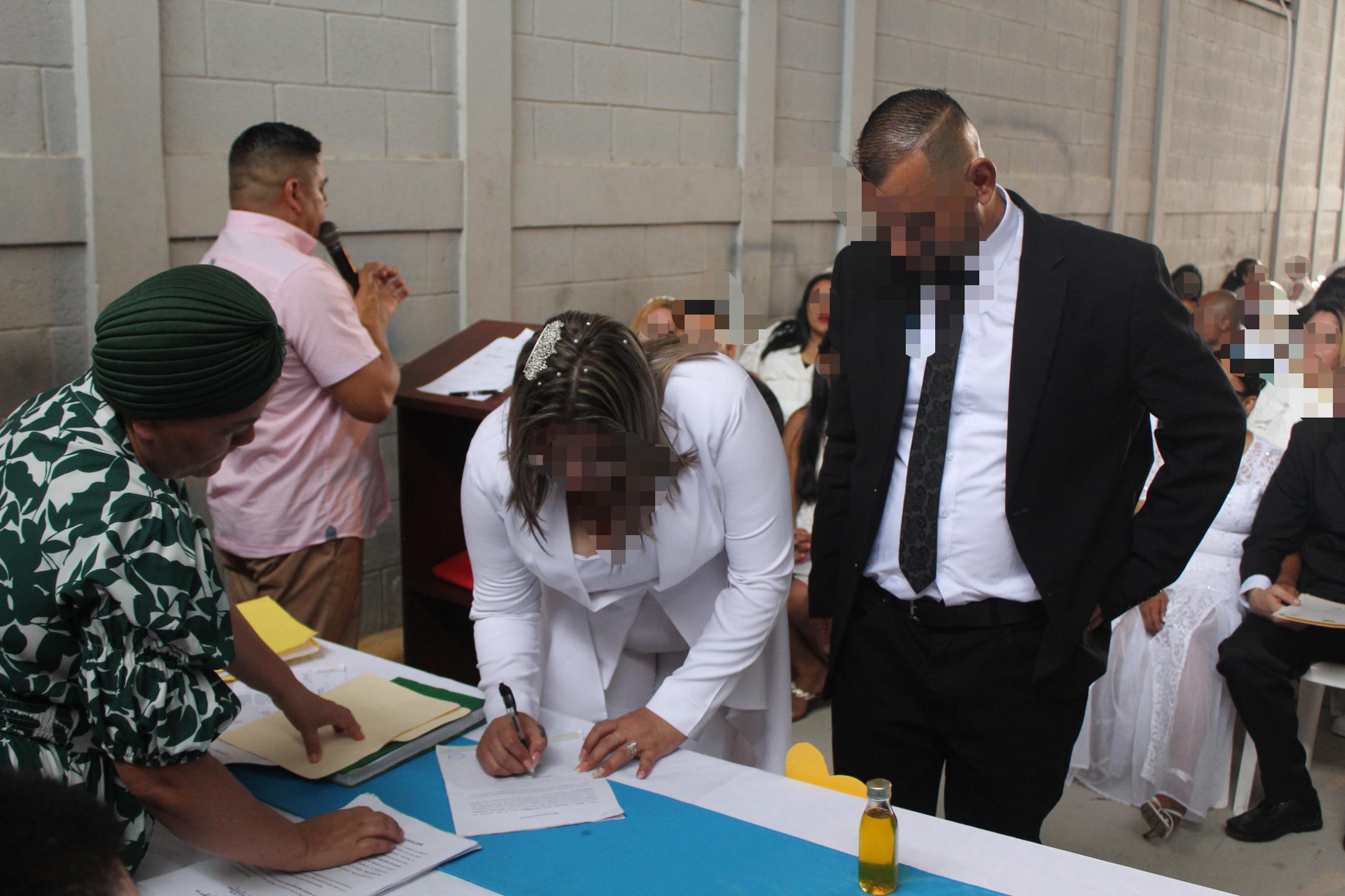 Por su parte, la licenciada en Trabajo Social Yadira Padilla, explicó que “para poder realizarse las bodas se comienza con la solicitud que realizan los Privados de Libertad hacia el departamento de Trabajo Social y la Dirección del Centro Penitenciario, luego se socializa con el señor director para darle trámite, generalmente se llevan a cabo de forma colectiva entre 15 a 20 parejas y se programa la realización cada seis meses, en el caso de tener muchas solicitudes por parte de ellos se realizan antes”.