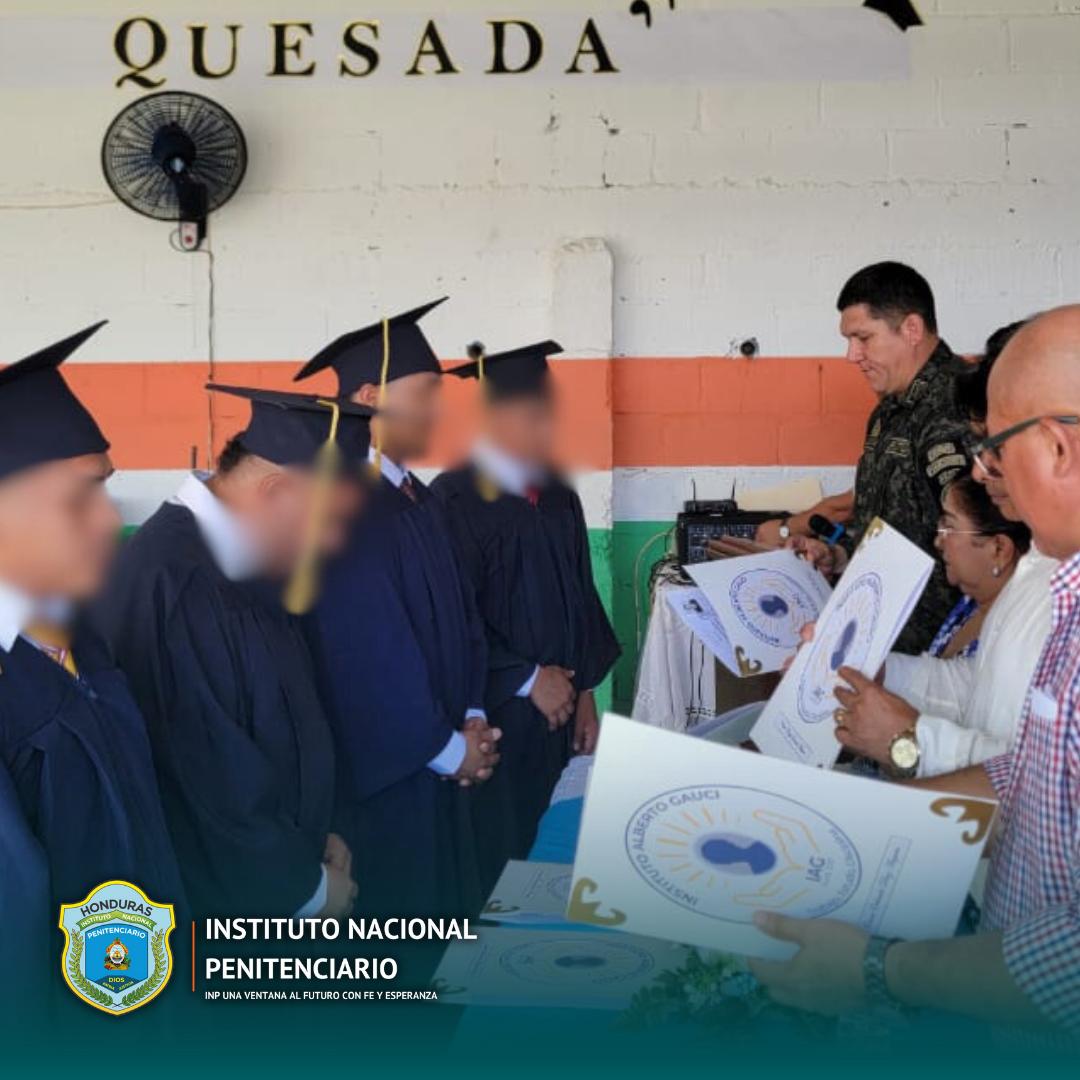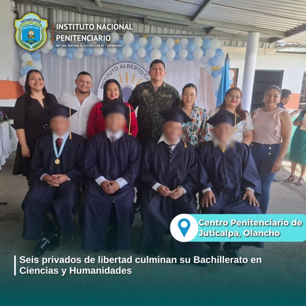 En un emotivo acto de graduación, seis Personas Privadas de Libertad del Centro Penitenciario de Juticalpa, Olancho culminaron con éxito sus estudios de Bachillerato en Ciencias y Humanidades, a través del Instituto Alberto Gaucci, que funciona al interior del recinto.