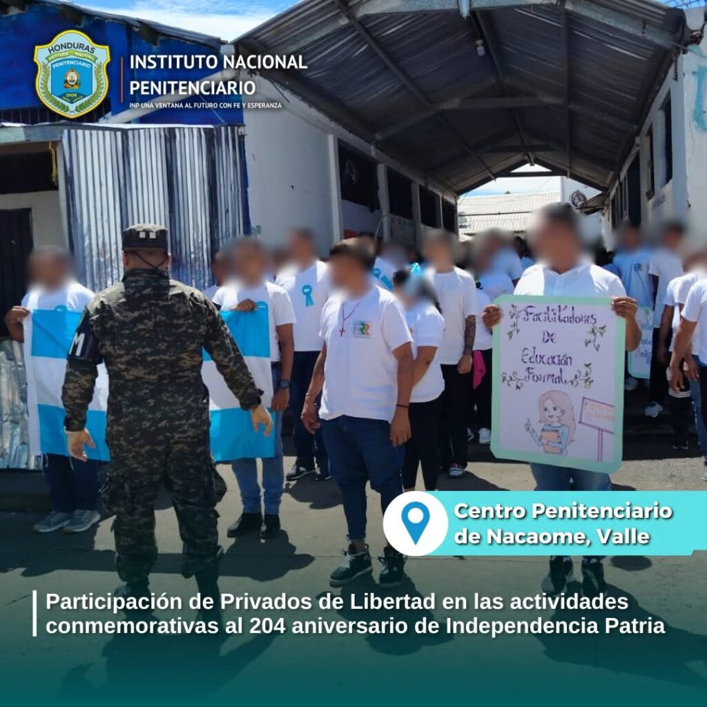 En un ambiente de fervor cívico, las Personas Privadas de Libertad del Centro Penitenciario de Nacaome, Valle, participaron en diversas actividades conmemorativas al 204 aniversario de la Independencia Patria.