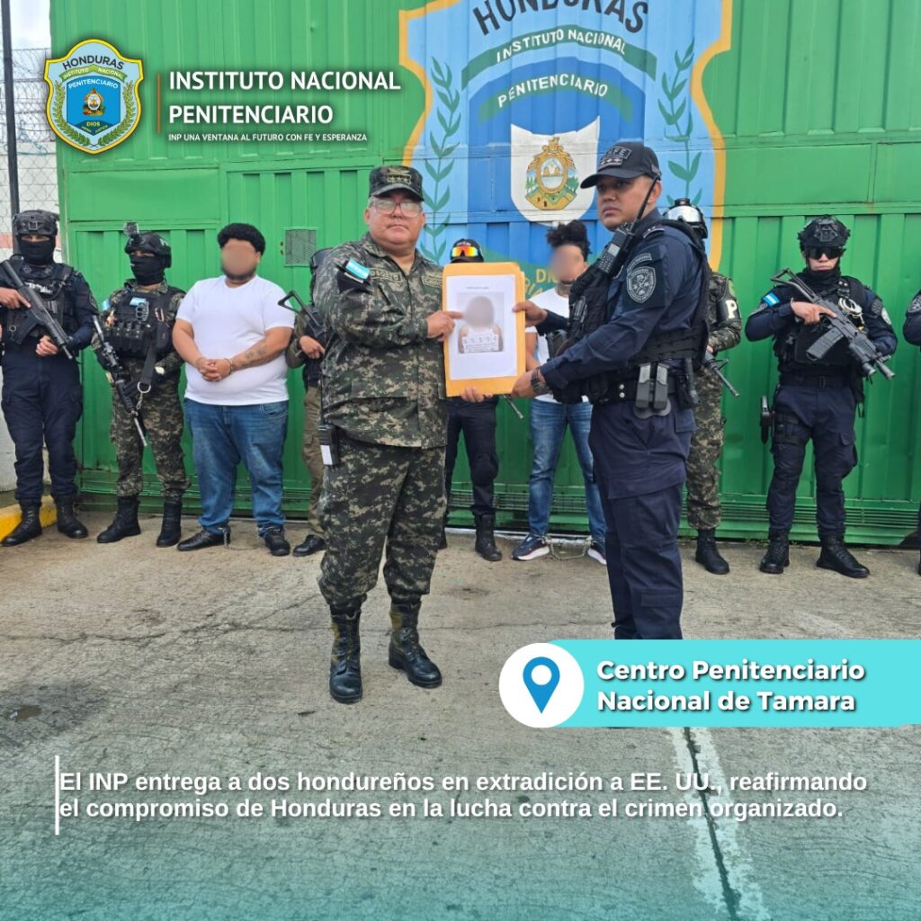 El Instituto Nacional Penitenciario (INP), a través del Centro Penitenciario Nacional de Támara (CPNT) y en cumplimiento a una orden emitida por la Corte Suprema de Justicia, realizó la entrega de dos ciudadanos hondureños solicitados en extradición por los Estados Unidos, por supuestos vínculos con el crimen organizado.