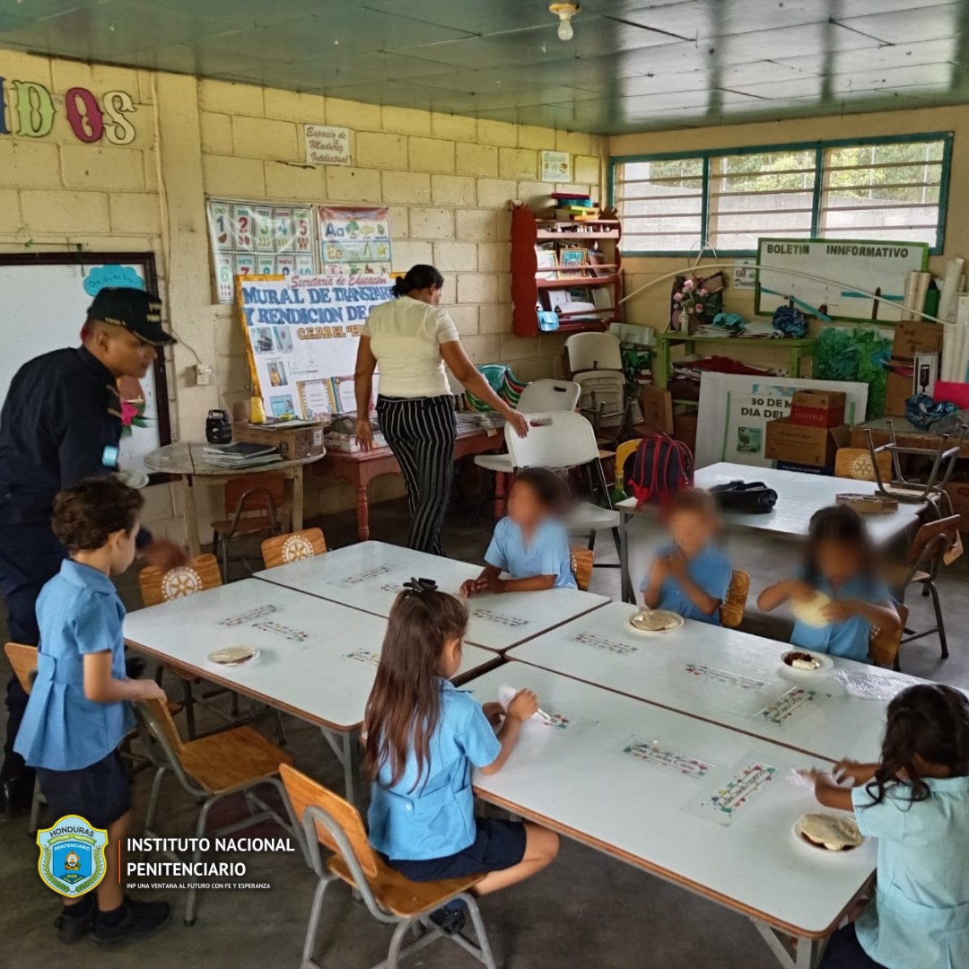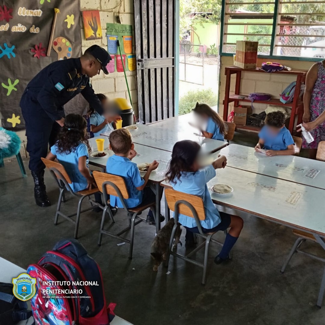 Autoridades del Centro Penitenciario de Olanchito, Yoro reportaron la entrega de alimentos a los Alumnos del Centro de Educación Prebásica del Kinder Jardín del Edén localizado en el municipio de Olanchito.