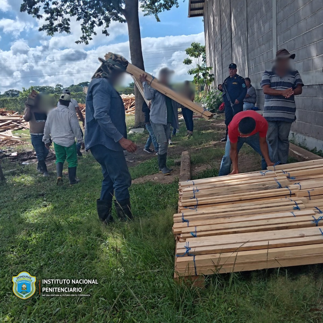 Personas Privadas de Libertad del Centro Penitenciario de Juticalpa, Olancho; que gozan del beneficio de preliberación brindan su apoyo al Instituto de Conservación Forestal (ICF) en el proceso de cubicación de madera, como parte de las acciones de colaboración interinstitucional con el Instituto Nacional Penitenciario (INP).