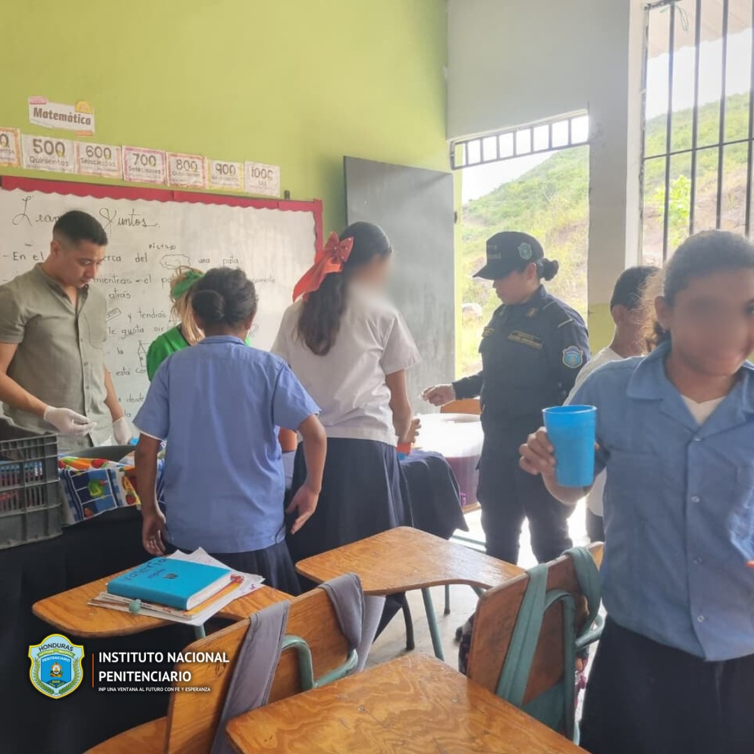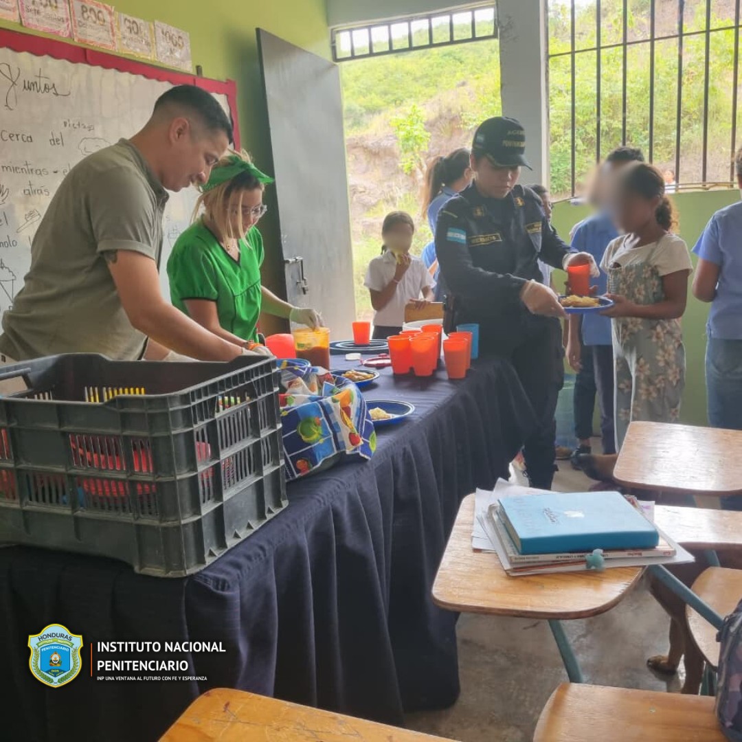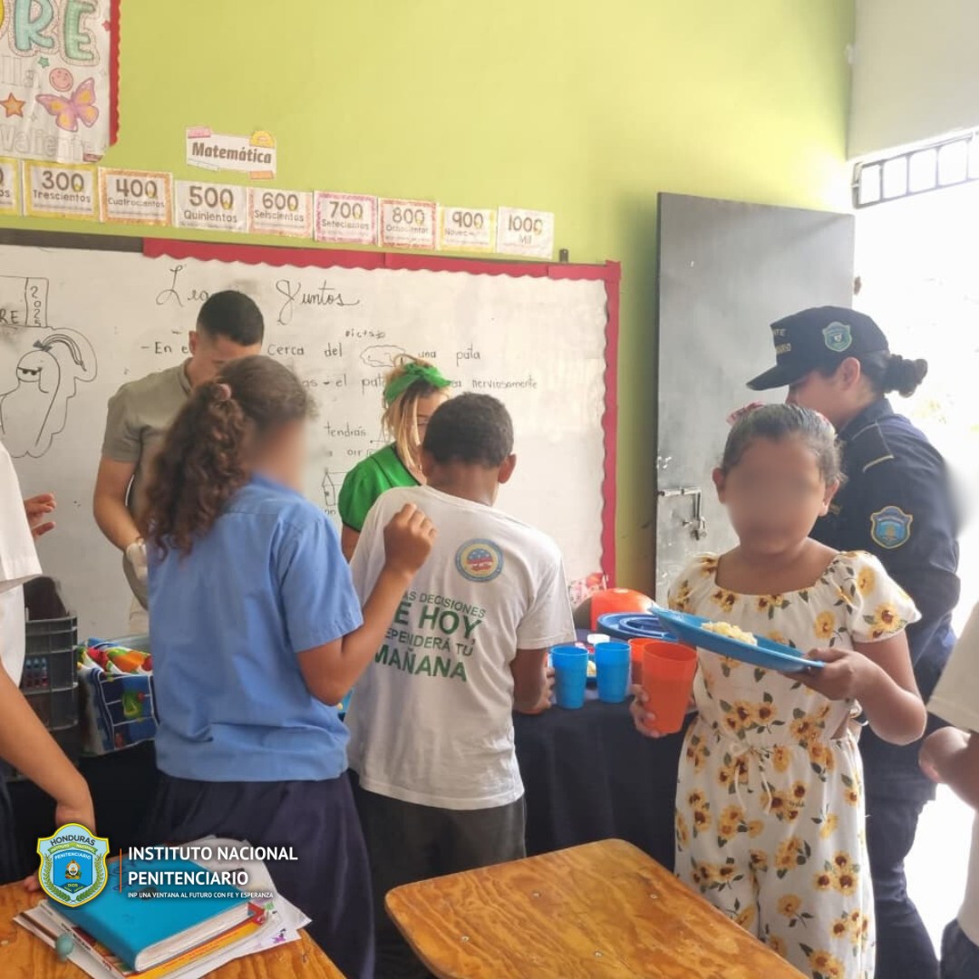 Autoridades de los Centros Penitenciarios de Choluteca y Juticalpa, Olancho, realizaron la entrega de meriendas escolares en el Kinder Mario Fumero y la Escuela Ramón Daniel Sarmiento, ubicados respectivamente en cada una de las ciudades mencionadas; esto como parte del compromiso institucional de apoyar a los escolares en su proceso de formación académica.