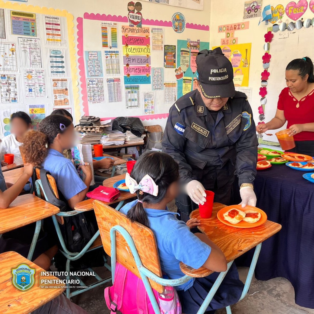 Autoridades del Centro Penitenciario de Juticalpa, Olancho realizaron la entrega de meriendas escolares a los estudiantes de la Escuela Ramón Daniel Sarmiento del Sistema PROHECO, ubicada en el municipio de Juticalpa.