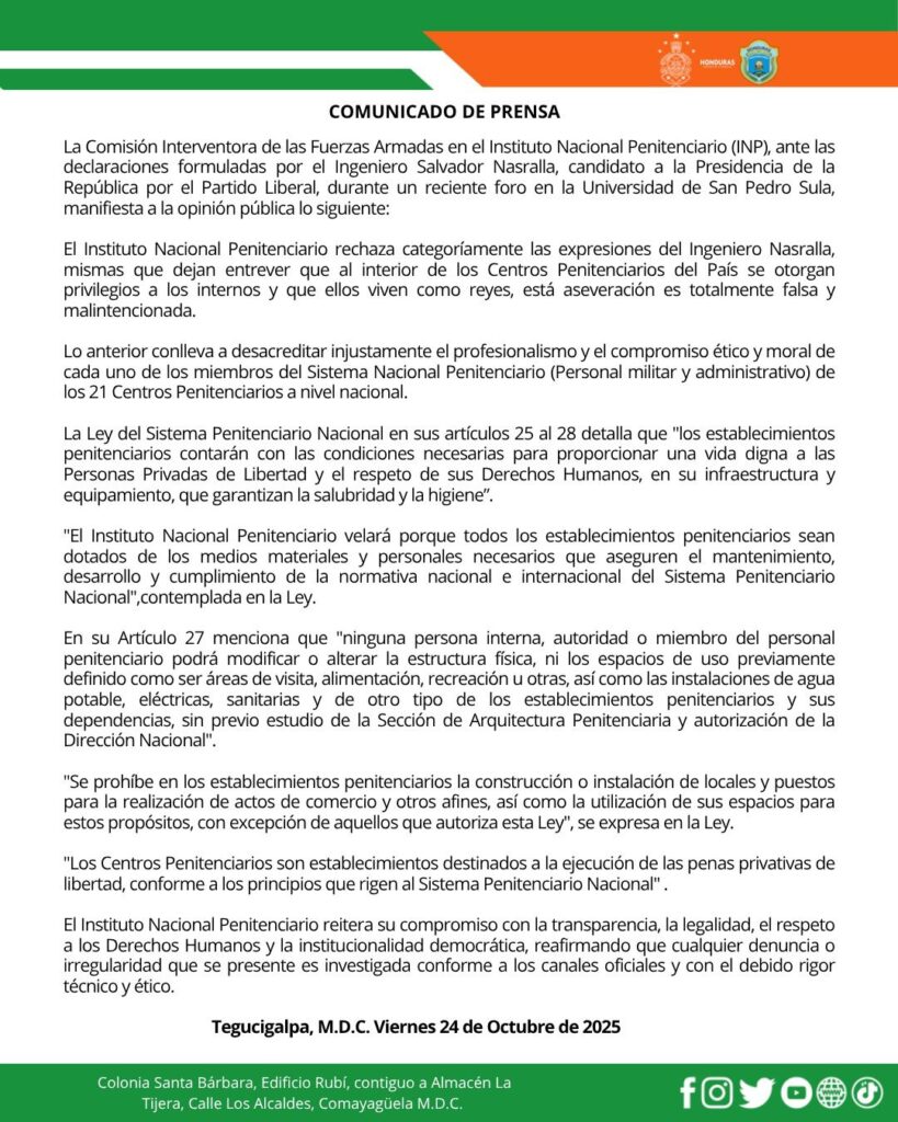 #INPHonduras #ComisiónInterventora #FuerzasArmadasDeHonduras #Transparencia #Legalidad #DerechosHumanos #Institucionalidad #SistemaPenitenciario #CompromisoÉtico #GestiónResponsable #Honduras