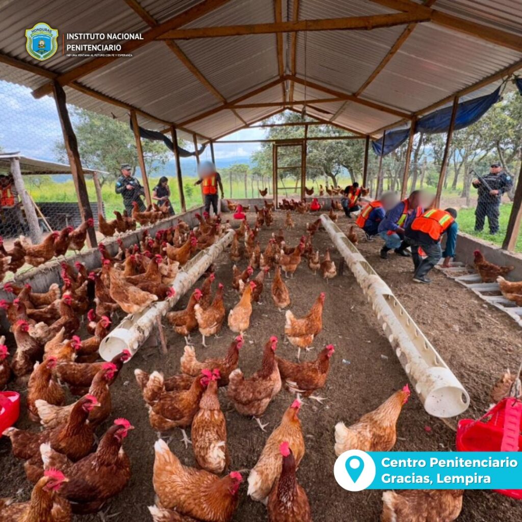 Privados de libertad del Centro Penitenciario de Gracias, Lempira que actualmente gozan del beneficio de preliberación continúan realizando labores productivas en la granja avícola del establecimiento, como parte de las acciones contempladas en el programa de las 3R’S.