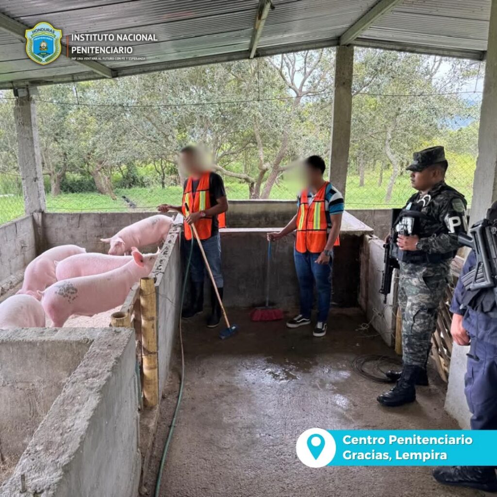 El Director del Centro Penitenciario de Gracias, Lempira Mayor de Caballería Uriel Fernando Velásquez González informó que un grupo de internos que gozan del beneficio de preliberacion continúan realizando labores en la granja porcina del establecimiento, con el propósito de fortalecer los programas de las 3R’S.