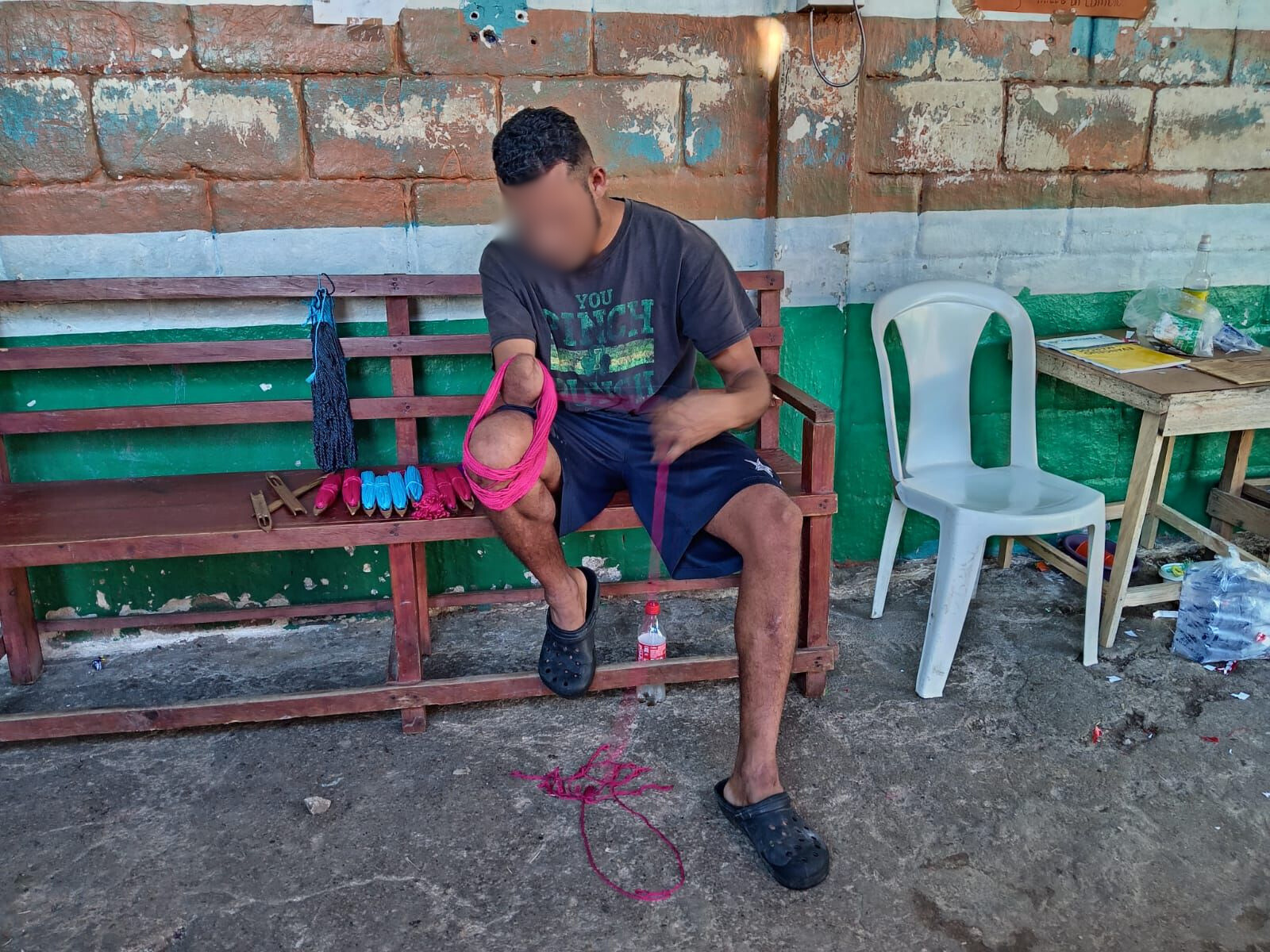 Se trata de un interno que a pesar de haber perdido uno de sus brazos, no ha permitido que su discapacidad defina sus límites. Con esfuerzo, paciencia y una admirable determinación, participa día a día en el taller de elaboración de hamacas, demostrando que la voluntad puede más que cualquier dificultad.
