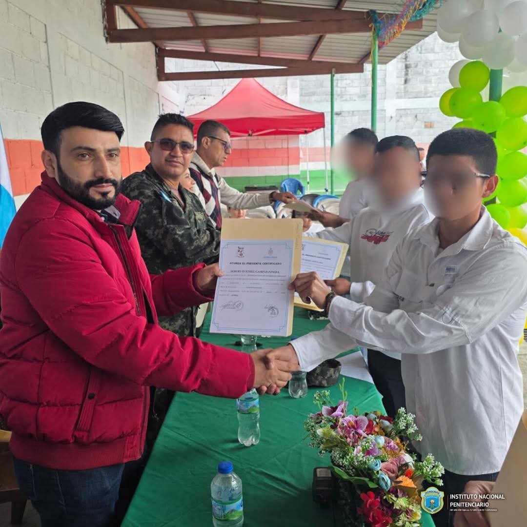 El abogado Marco Javier Erazo, Director Académico de la Universidad Cristiana Evangélica Nuevo Milenio (UCEM) visitó el Centro Penitenciario de Ocotepeque acompañado de autoridades del Instituto Nacional de Formación Profesional (INFOP) y de un Pastor Evangélico, con el propósito de presenciar la entrega de certificaciones a las Personas Privadas de Libertad que culminaron los cursos impartidos por INFOP durante el año.
