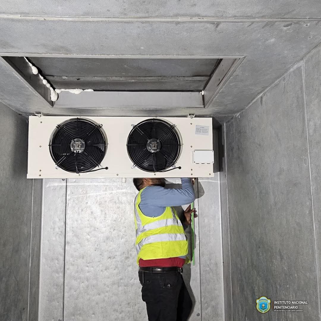 El Director del Centro Penitenciario de Morocelí El Paraíso, «La Tolva», Teniente Coronel de Caballería Allans Chavarría expresó que con fondos del economato se realizo el cambio completo del sistema de refrigeracion del segundo cuarto frío que funciona en la cocina.