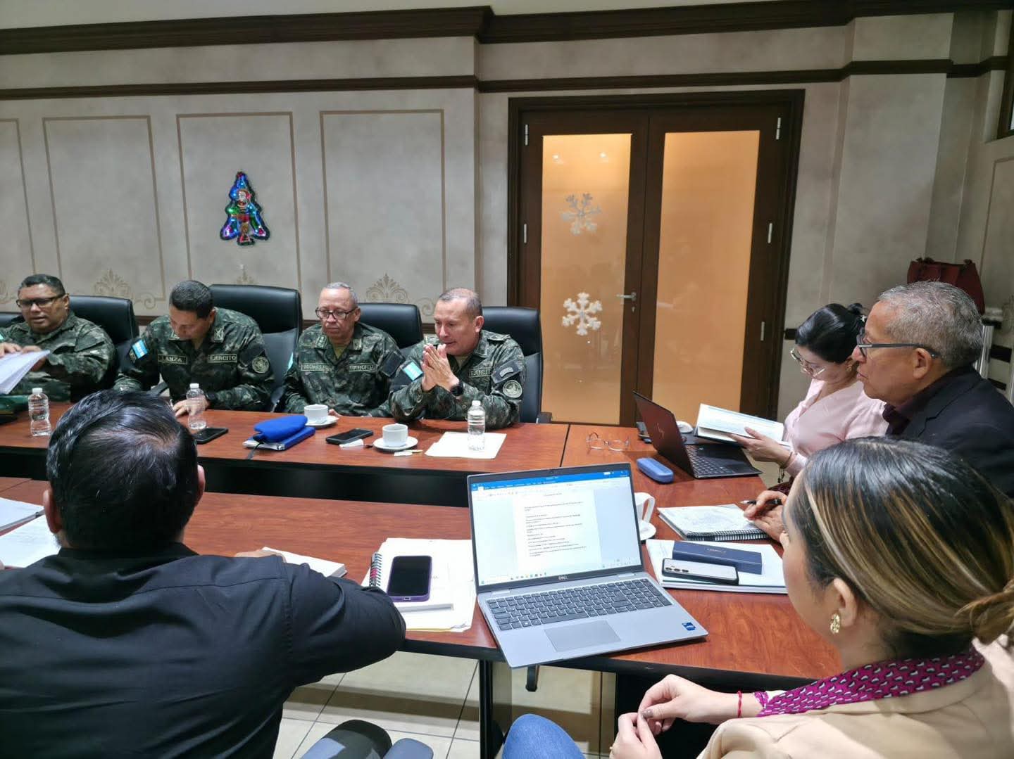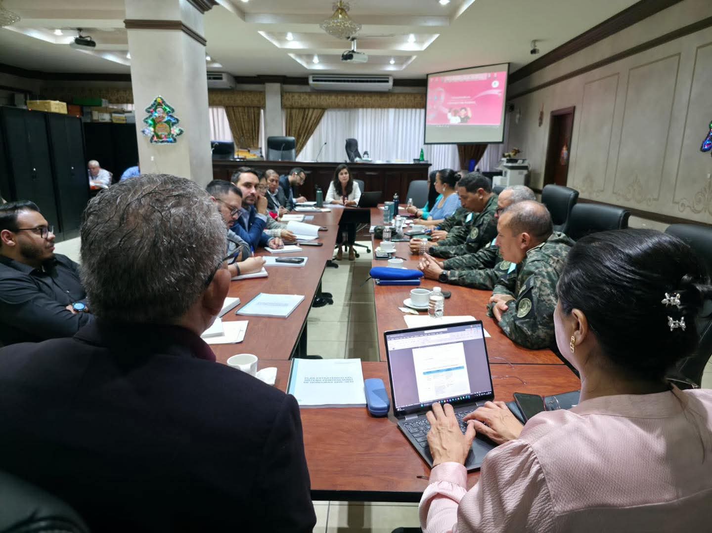El encargado de informarle a los miembros de la Mesa Técnica en mención fue el Presidente de la Comisión, el General de Brigada José Miguel Mejía Medina acompañado de los Comisionados Adjuntos Coronel de Ingeniería DEM Luis Alonso Rosales Cardoza y el Coronel de Caballería DEM Marco Alexander Lanza Ávila, el Coronel de Infantería DEM Milton Escobar, subgerente de Gestión Penitenciaria y demás comitiva.