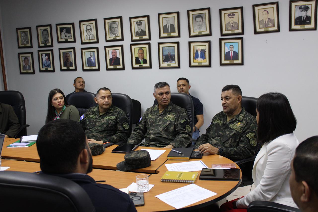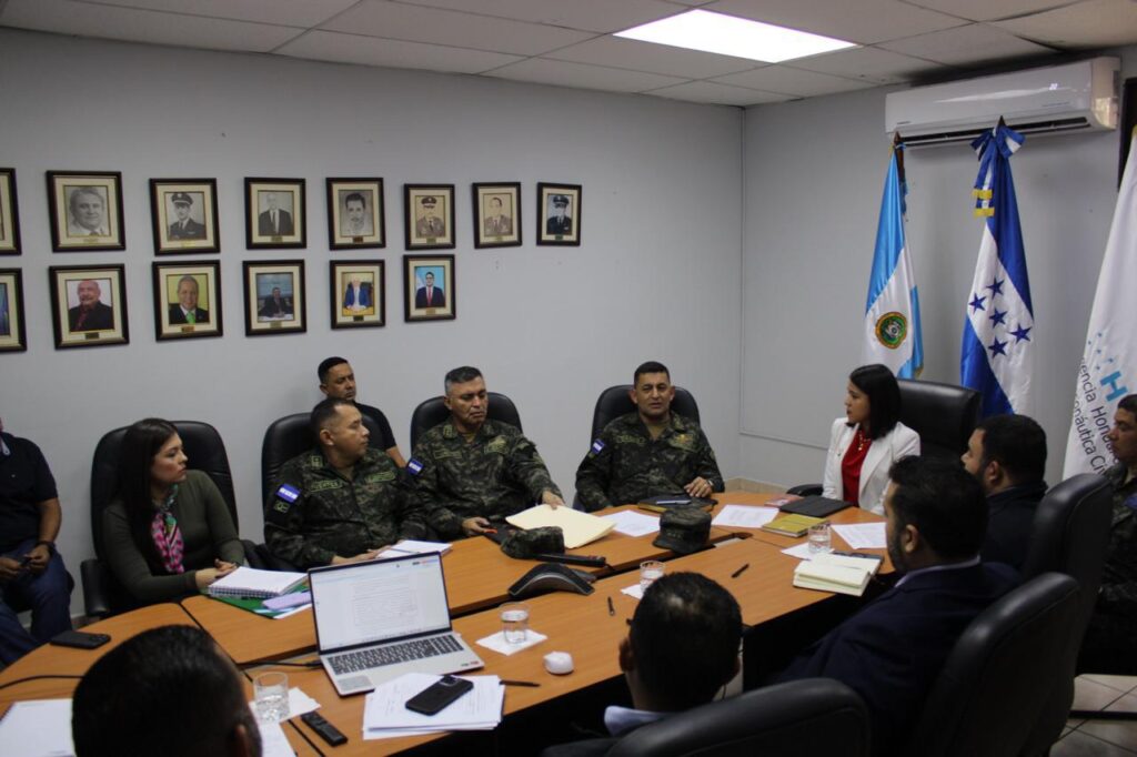 En un esfuerzo por consolidar la coordinación interinstitucional en materia de seguridad, el Comisionado Presidente de la Comisión Interventora del Sistema Penitenciario Nacional Coronel de Caballería Othoniel Gross Castillo, acompañado por los Comisionados Adjuntos Coronel de Infantería Erwin Roberto Lara Franco y Coronel de Artillería Raúl Alexis Fuentes Borjas, sostuvieron una importante reunión con la directora ejecutiva de la Agencia Hondureña de Aeronáutica Civil Abogada Belkis Estela Escobar Sandoval y su equipo técnico.